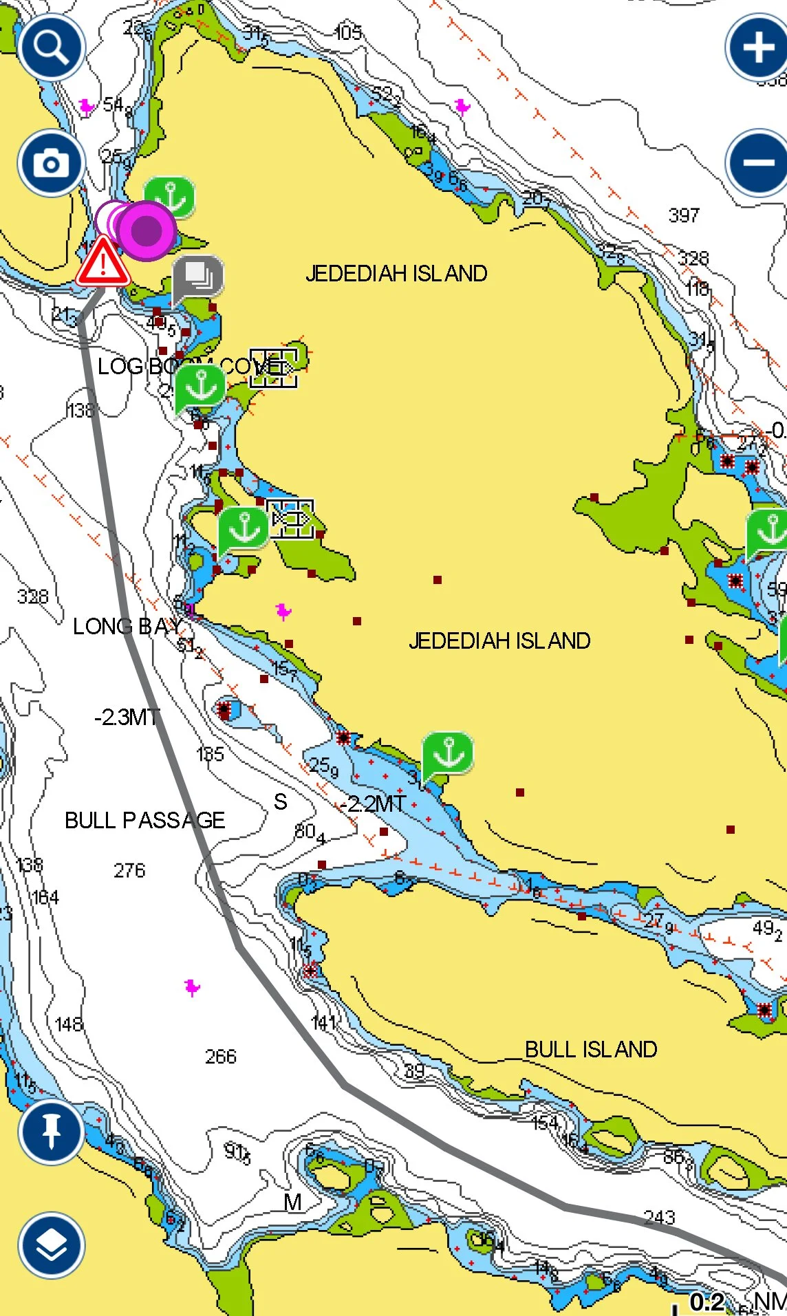 Despite that lack of guidance, I figured out on my own not to engage with torpedoes when I’m on a boat. When leaving Nanaimo and going north-east across the Strait of Georgia, one will do just that if one is not careful. There is a military exercise area there in the shape of a pentagon (coincidence?) called Whiskey Golf (WG) that is jointly run by Canadian and US forces.